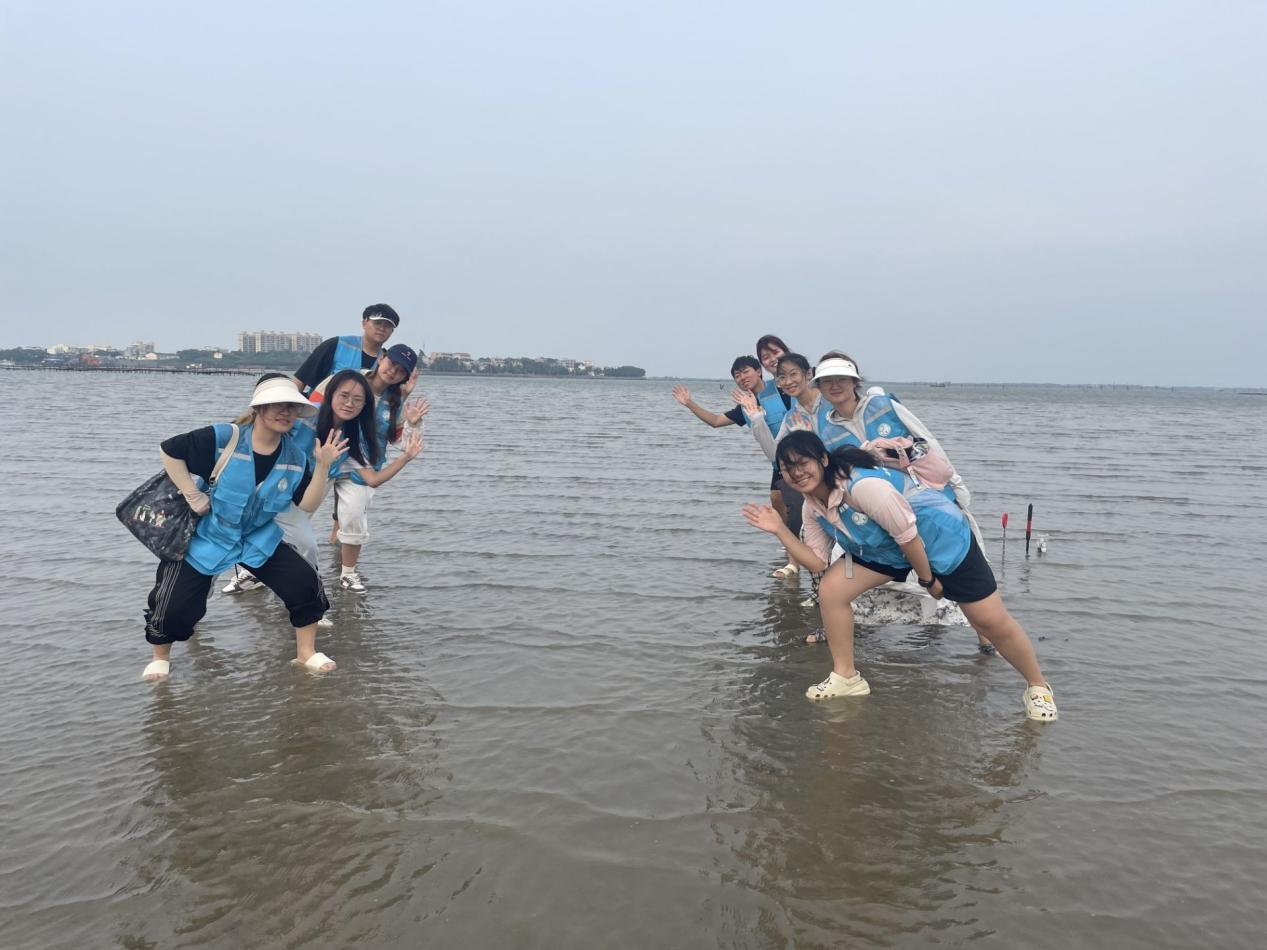 4月23日下午,“逐梦之子”们在阮港老师的带领下亲眼目睹海浪拍打着岸边,感受那震撼人心的力量;亲手拾起那些被潮汐冲刷的贝壳,探寻它们的岁月痕迹。对于观潮者来说,最吸引人的无疑是潮水的涨落。到达北港岛之后,宣讲队的成员就立即展开了观察行动,使用多种工具记录潮水的起伏。