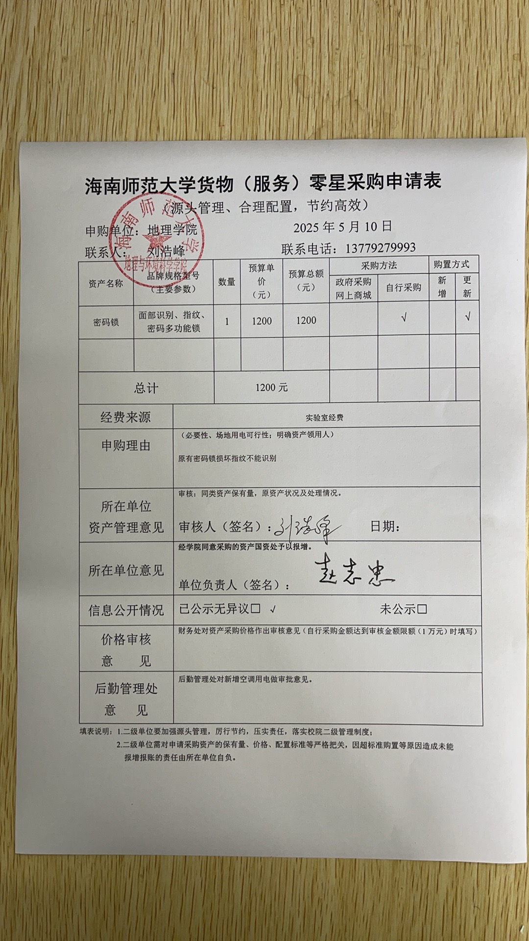 海南师范大学地理与环境科学学院刘浩峰老师设备采购公示
