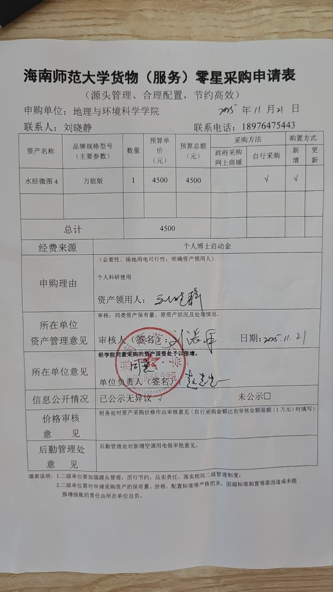 海南师范大学地理与环境科学学院刘晓静老师设备采购公示