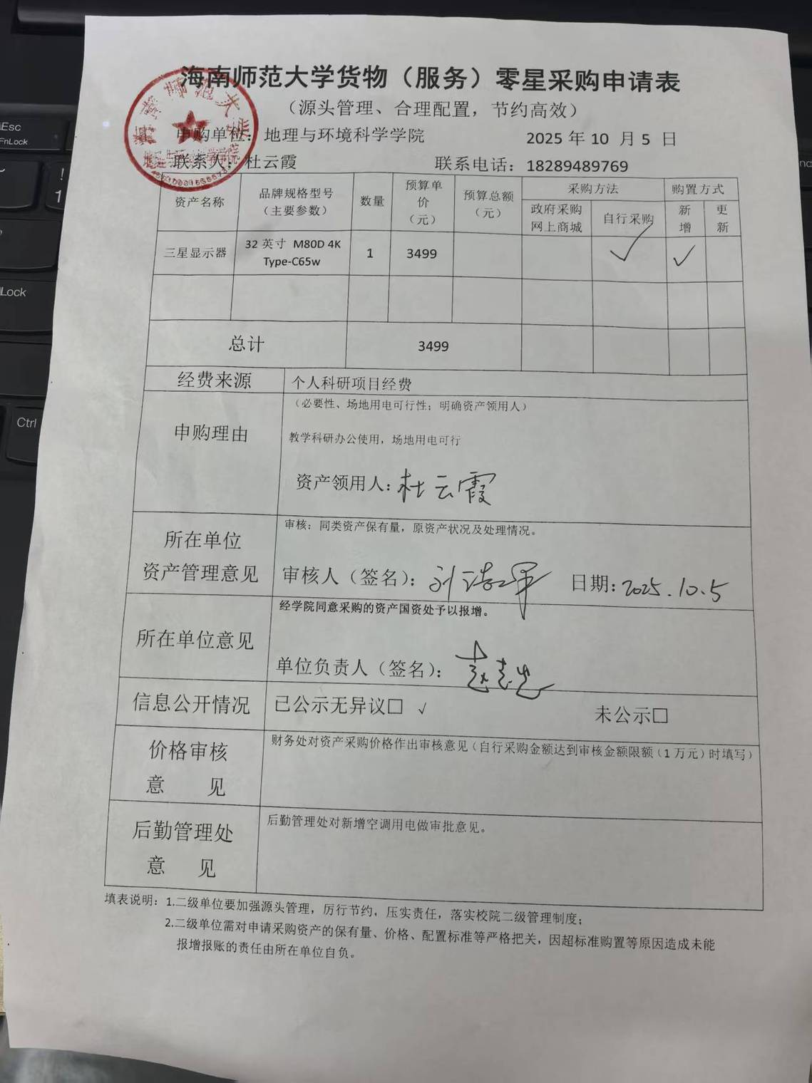 海南师范大学地理与环境科学学院杜云霞老师设备采购公示